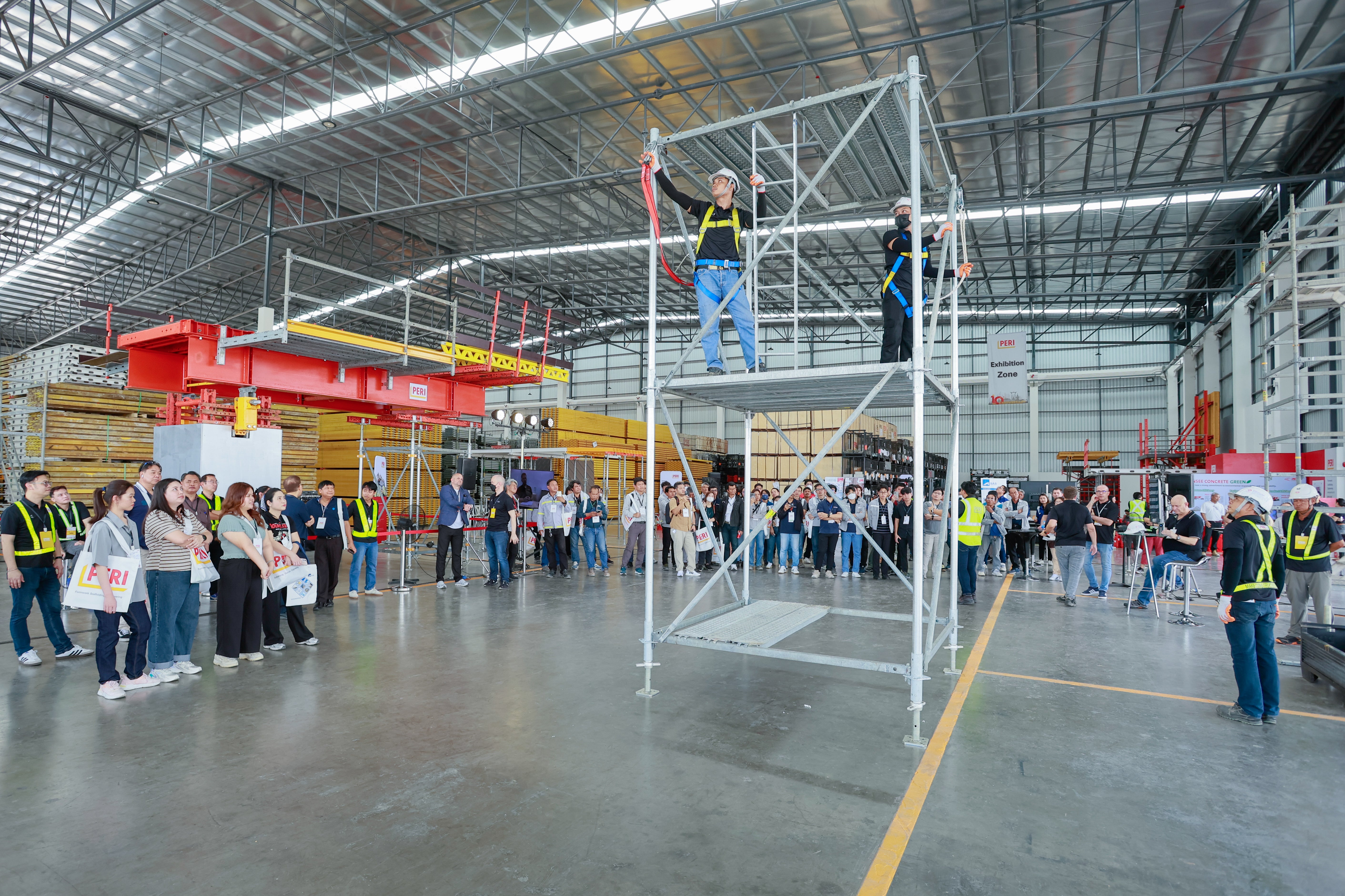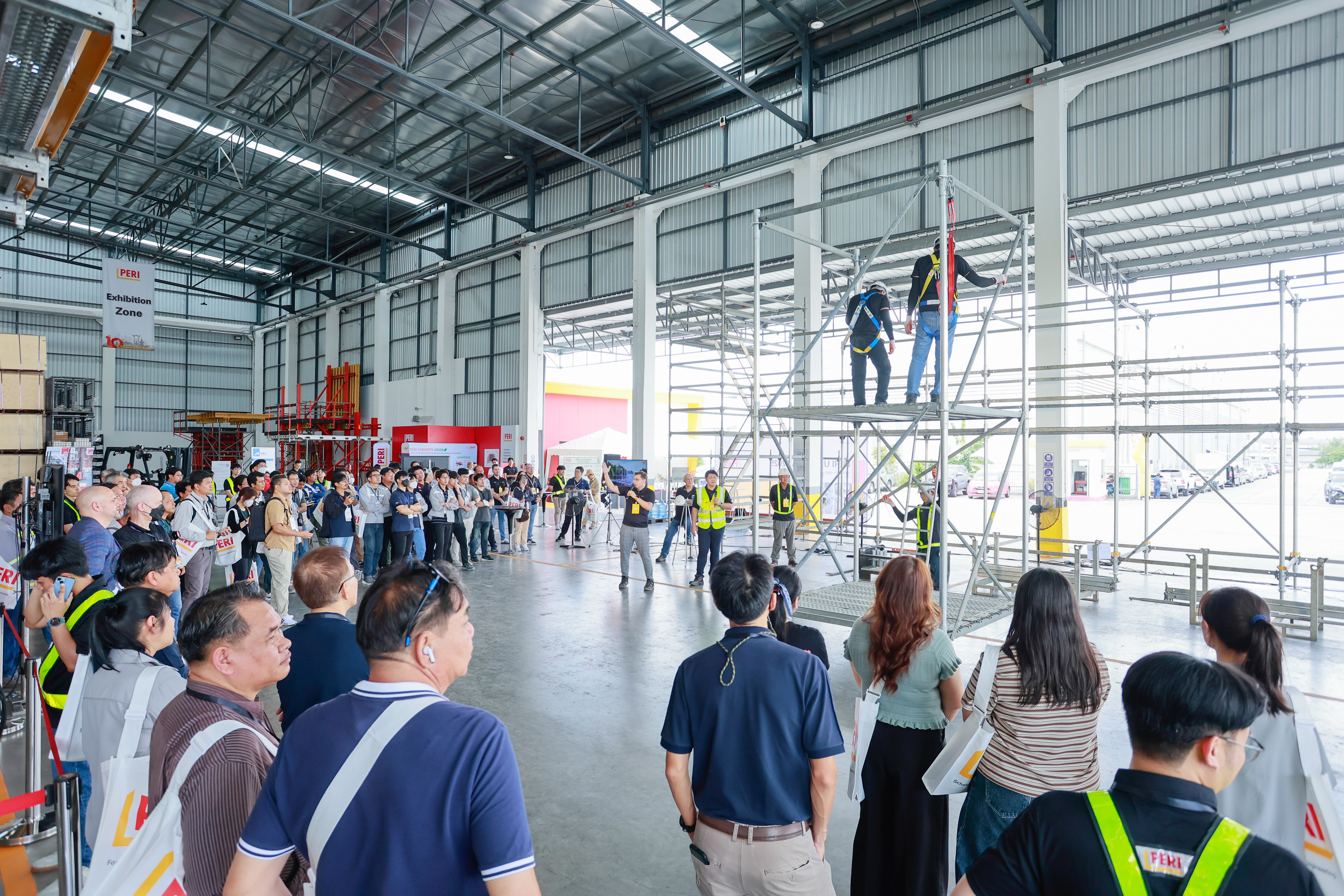 จุดเด่นของงานคือ กิจกรรม Hands-On ที่ให้ผู้เข้าร่วมได้ทดลองประกอบและถอดชิ้นส่วนระบบนั่งร้านแบบโมดูลาร์ด้วยตนเอง เพื่อเรียนรู้ถึง ความสะดวกในการใช้งาน ความยืดหยุ่น และประสิทธิภาพ ของระบบ ทีมผู้เชี่ยวชาญจาก PERI ได้ให้คำอธิบายอย่างละเอียดและตอบคำถามต่างๆ เพื่อให้ผู้เข้าร่วมเข้าใจถึงศักยภาพของระบบในการนำไปใช้กับโครงการก่อสร้างประเภทต่างๆ